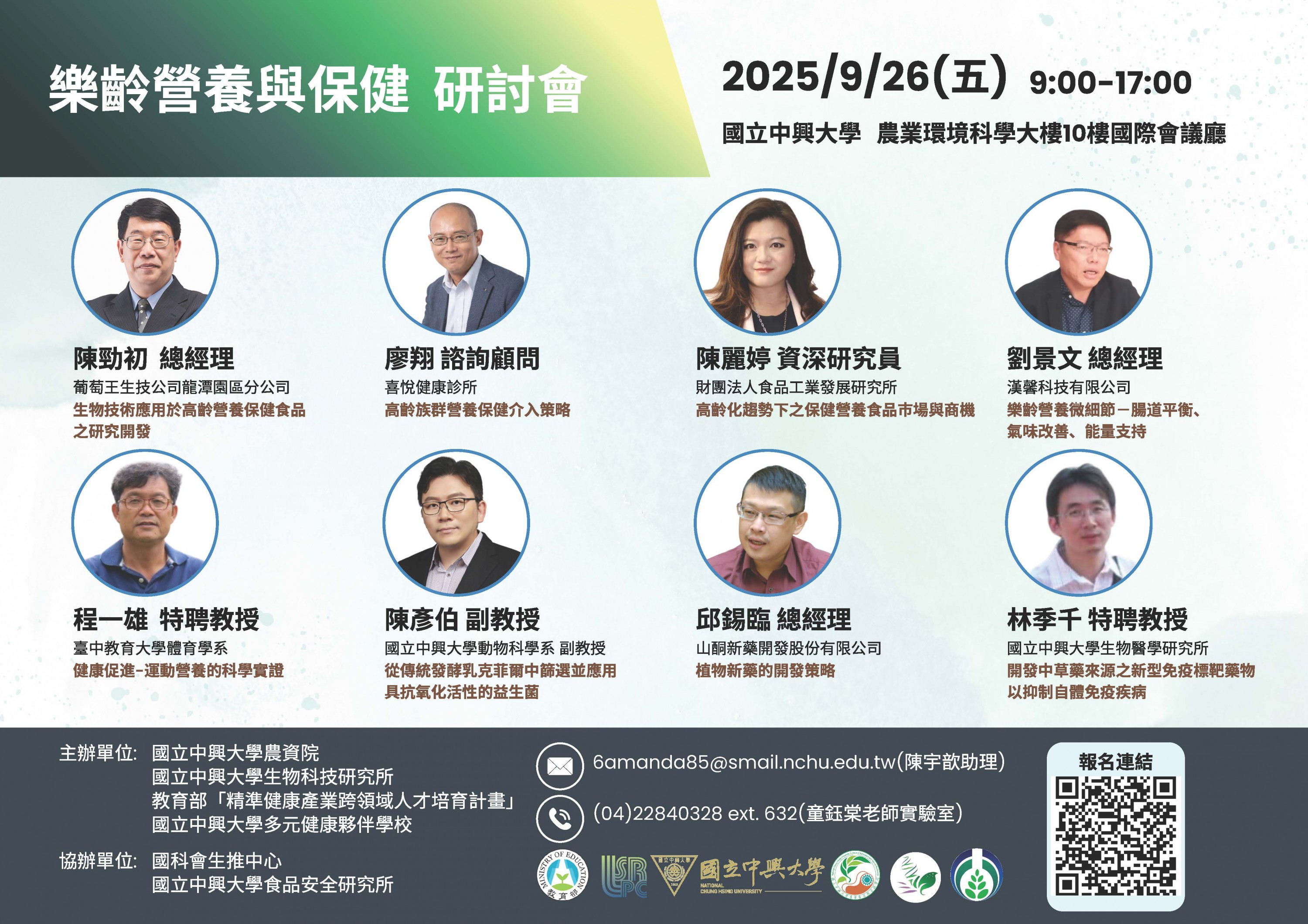 邀請來自產業界、學術界與營養專業人士共同交流,從微觀機轉到市場應用,全面探討健康老化的營養策略與創新方向。